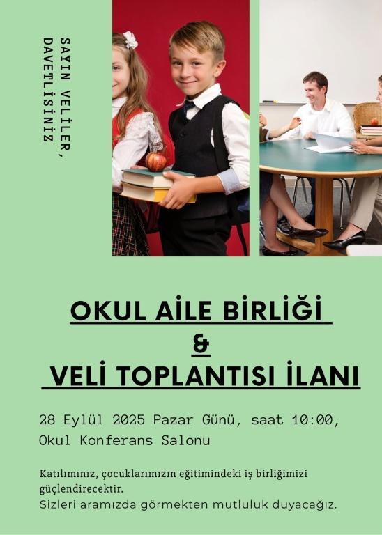Bu önemli toplantıya tüm velilerimizin katılımı büyük önem taşımaktadır. Toplantıda, yeni eğitim öğretim yılına dair önemli bilgiler paylaşılacak, Okul Aile Birliği seçimleri yapılacak ve velilerin soruları yanıtlanacaktır. Katılımınız, çocuklarımızın eğitimindeki iş birliğimizi güçlendirecektir. Sizleri aramızda görmekten mutluluk duyacağız.